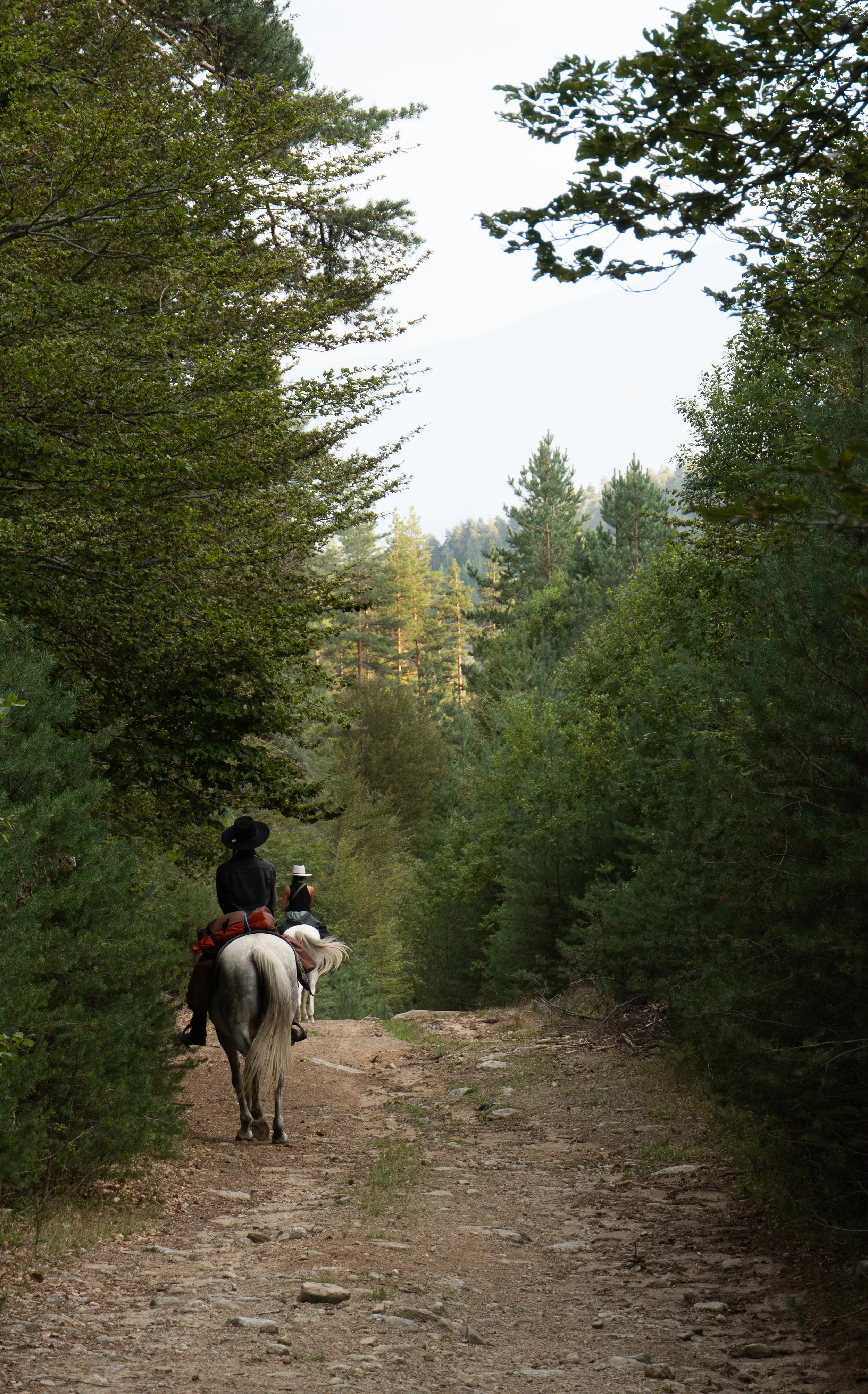 We trundled across the mountain roads, our destination a ranch in the valley of the Rila Mountains, Bulgaria; a National Park home to little else but dense pine forest, geothermal plumes and electrical storms. Our journey starts here, a 150km loop, traversing valleys between the ridgelines with nothing but what we can fit on our gracious steads. After a day of bonding with our horses kindly loaned by the local ranch, our packing Tetris started at 6 am.