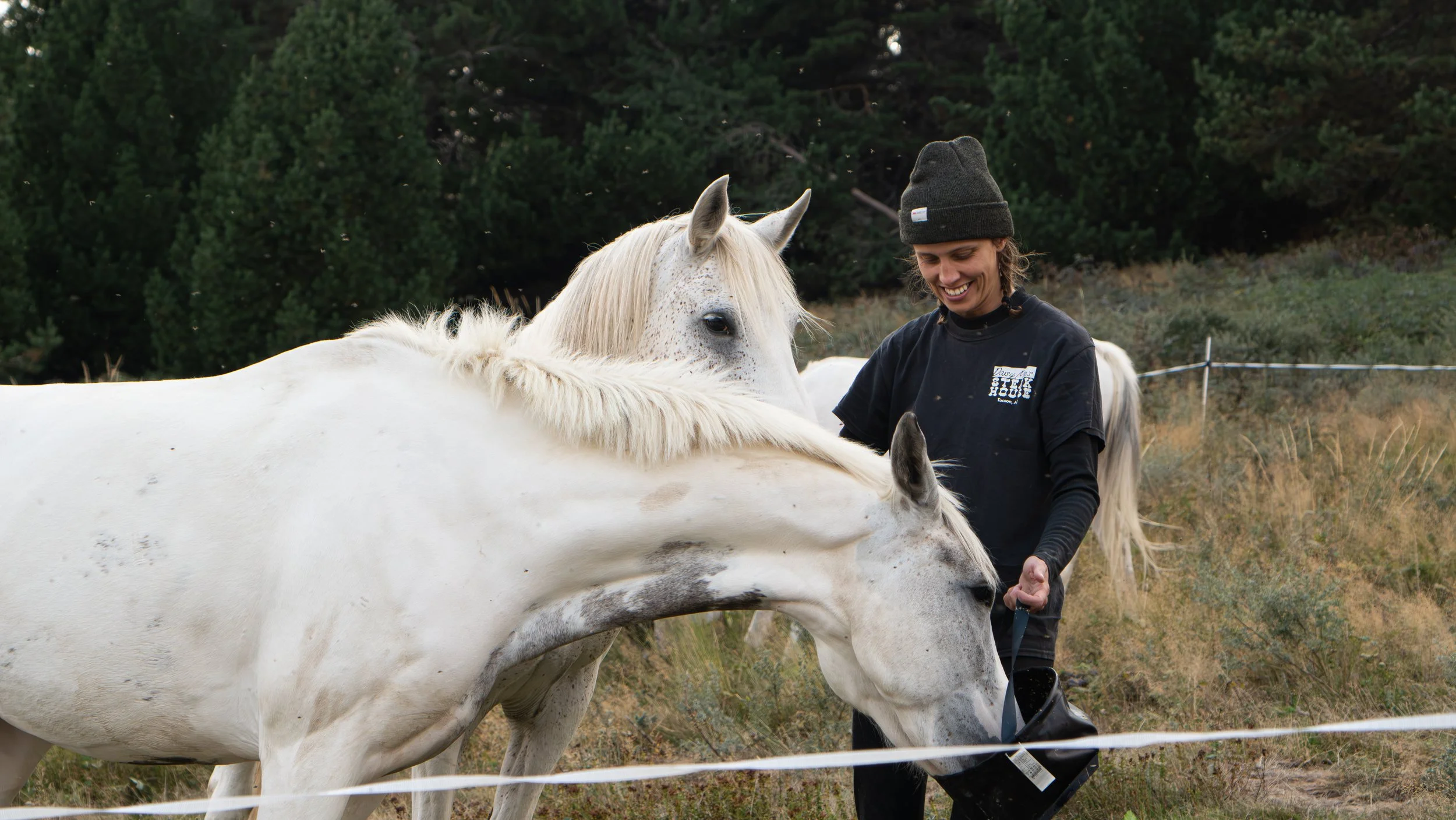 Our travelling herd included 4 white mares (including mother and daughter Troya and Fanta) and the ironically sweet-natured gelding Terminator; whom after fruitless attempts to persuade the ranch owner to sit him out of this mission (there were clear signs of a sore developing beneath the white hairs on his back), would be joining us nonetheless. The horses stood with the patience of monks as we tugged, pushed, and relentlessly rearranged the packs and saddles. This was a game of pure experimentation. For Soph and Lorelle, they’d never contended with the tactics needed to condense such a huge amount of previsions, including 5 days; worth of grain between the horses; backs. I on the other hand was learning the logistics of my camera gear, how to ensure the right stuff was accessible at the right time – but equally secure in the event of bolting, or a surprise buckeroo.